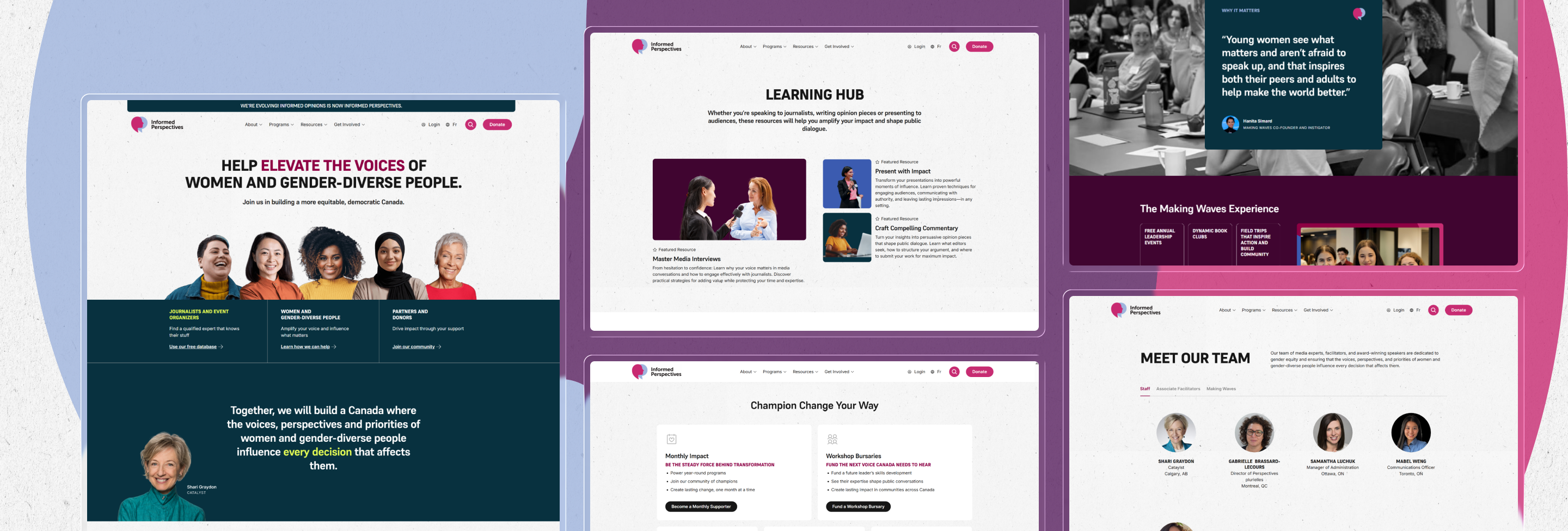 Informed Perspectives (formerly Informed Opinions) is a Canadian non-profit dedicated to amplifying the voices of women and gender-diverse experts in media, policy, and public discourse. Through training, advocacy, and an expansive expert database, the organization works to ensure diverse perspectives are represented across Canada’s decision-making landscape.