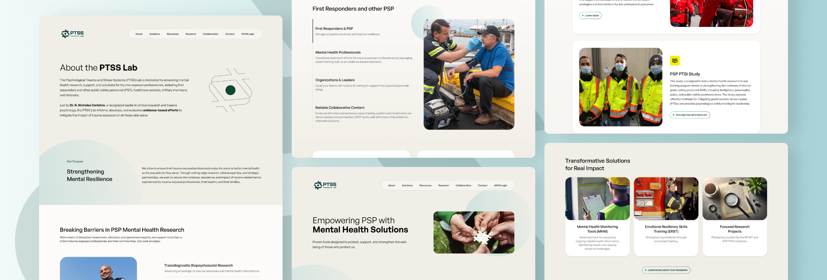 The PTSS Lab needed a website where their audience could easily find information about the lab and its work, as well as access evidence-based tools for assessing and managing the mental health and wellbeing of first responders and other public safety personnel (PSP).